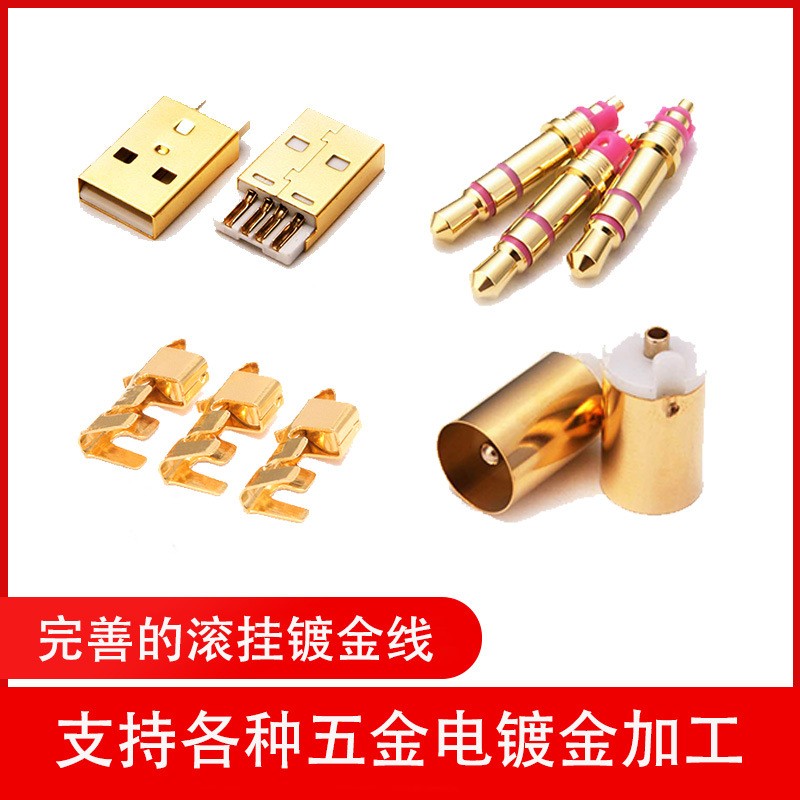 鋁合金鍍金、陶瓷鍍金、銅件鍍金、不銹鋼鍍金、鎢銅鍍金等五金電鍍金產品。電子類、通訊、光纖、航空、醫療等精密五金接插件、導電接觸片類,對導電性、焊錫性、抗蝕性等有要求的行業均可鍍金加工。
