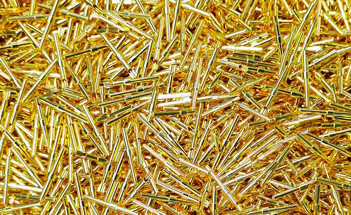 插針鍍厚金厚度通常通過電化學(xué)鍍(電鍍)等工藝來實(shí)現(xiàn)。在電鍍過程中,通過將插針作為陰極,金溶液中的金屬離子在其表面析出形成金層。鍍金厚度的控制可以通過調(diào)整電鍍時(shí)間、電流密度和金溶液的成分等參數(shù)來實(shí)現(xiàn)。